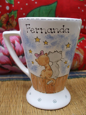 Eles não são fofos !!!!! O conjunto , o mini coador de café com a xícara pintada artesanalmente .